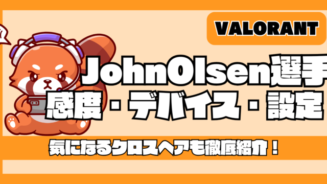 【VALORANT】JohnOlsen(ジョーンオルセン)選手の感度・使用デバイス・設定・クロスヘアを徹底紹介!