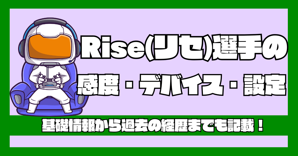 という疑問を持つ方に向けて、今回はRise(リセ)選手の感度・使用デバイス・設定の3つを分かりやすく紹介していきます。また、Rise(リセ)選手の基本情報や過去の経歴まで記載していますので興味がある方は是非お読みください。