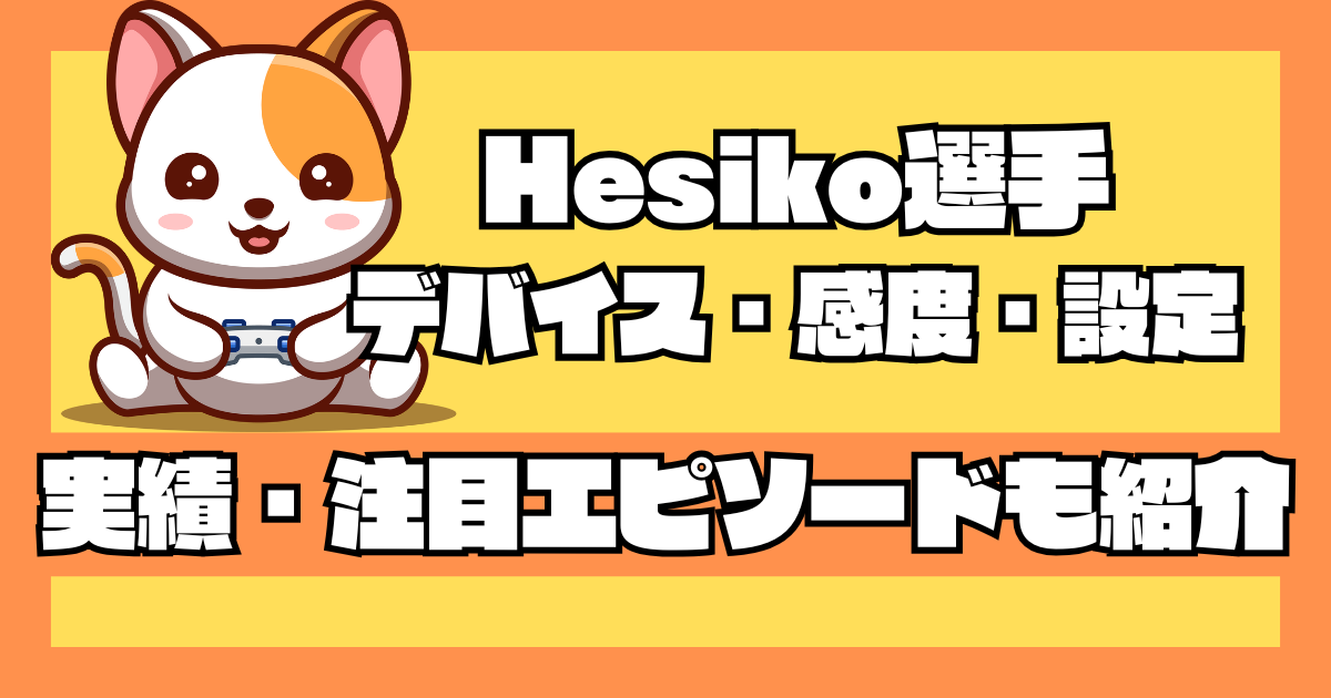 を紹介しています。Apex Legendsでの圧倒的な実力と独自の立ち回りで注目を集めた元プロゲーマー・Hesiko(へしこ)さんの魅力を、使用デバイスや設定とともに詳しく解説します。プロ時代の実績や配信活動も含め、プレイヤーとしての特徴を網羅的に知ることができます。