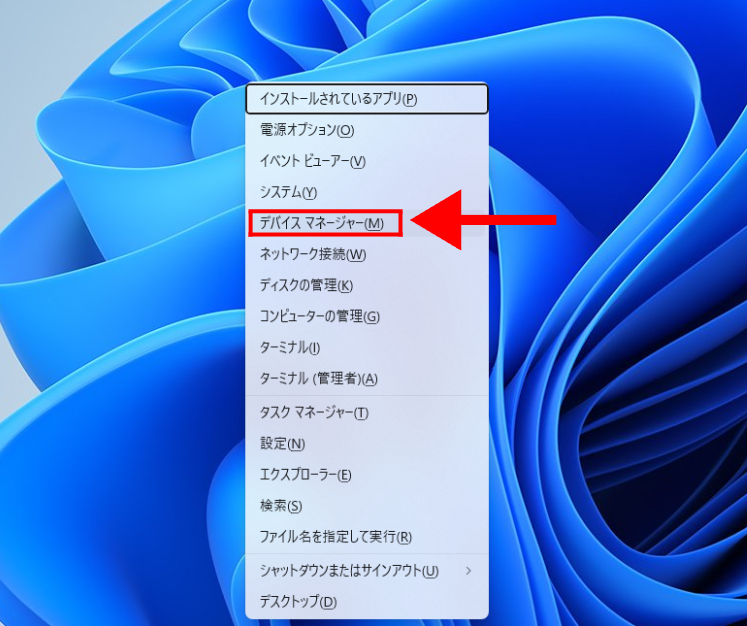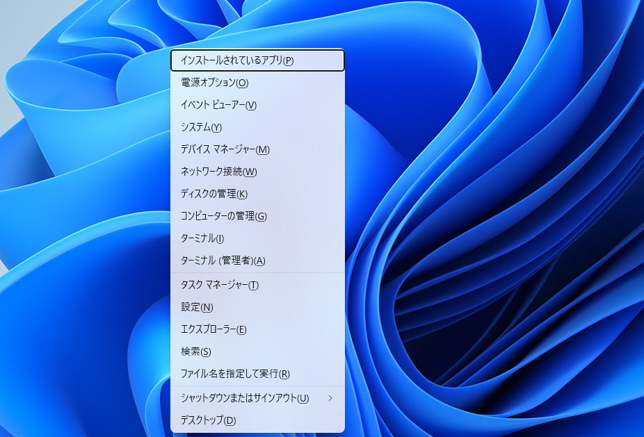 ホーム画面でWindowsボタンとXを同時押ししましょう。するとこのような画面が表示されます。