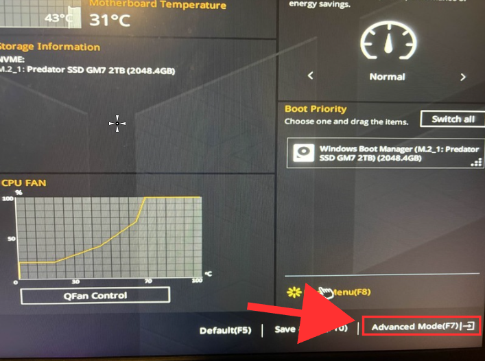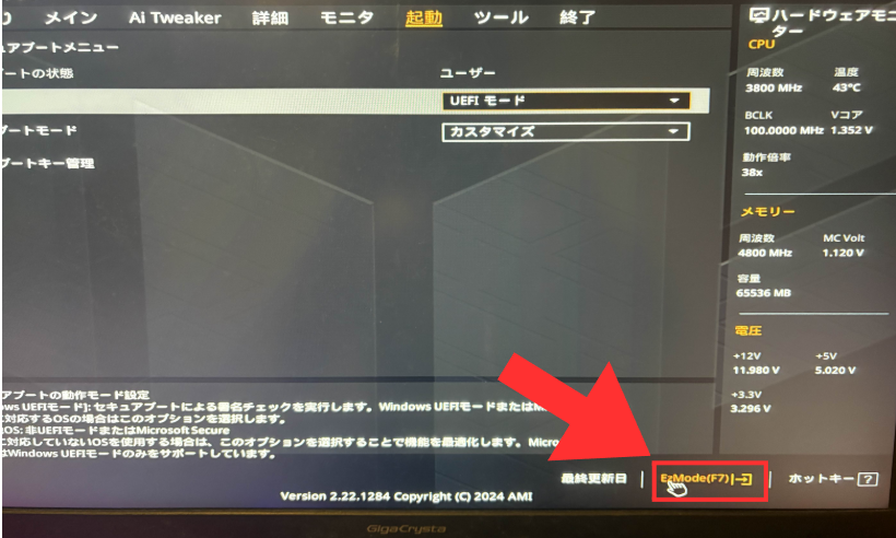 【ステップ2】BIOSにアクセスしAdvanced Modeを開く
