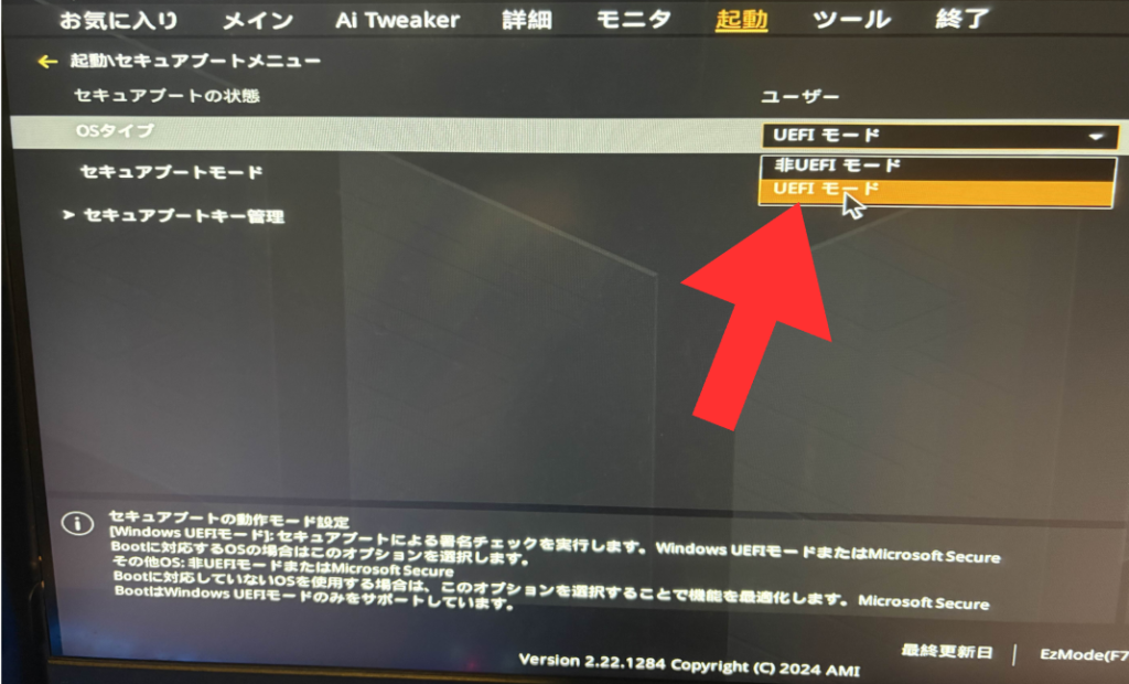 【ステップ1】UEFI セキュアブートが有効か無効かを確認