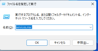 Windowsボタン+Rを押して【services.msc】と入力し、OKを押しましょう。