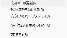 ディスプレイアダプターの下に表示されるグラフィックボードを右クリックしましょう。