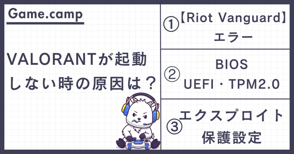 VALORANTが起動しない原因は、Riot VanguardのエラーやWindowsの設定、GPUドライバの不具合、常駐ソフトとの競合などさまざまです。