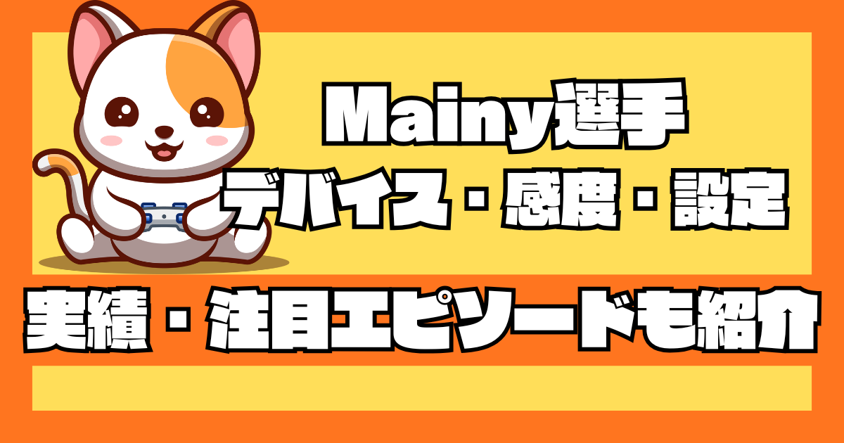 を紹介しています。Apex Legendsの競技シーンで活躍してきたMainy(メイニー)選手は、高い戦術理解と安定したエイムで多くのファンを魅了してきました。本記事では、彼のプレイスタイルを支えるデバイス構成や感度設定を詳しく解説し、Mainy(メイニー)選手の強さの秘訣に迫ります。
