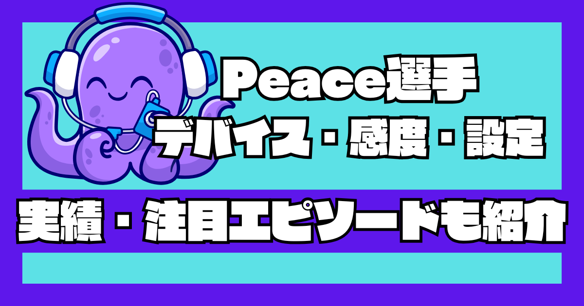 を紹介しています。Apex Legendsの競技シーンで活躍するPeace(ピース)選手について、プレイスタイルや実績、使用デバイス・感度設定を詳しく解説します。高精度な操作と冷静な立ち回りで注目を集める彼の魅力を一緒に見ていきましょう。