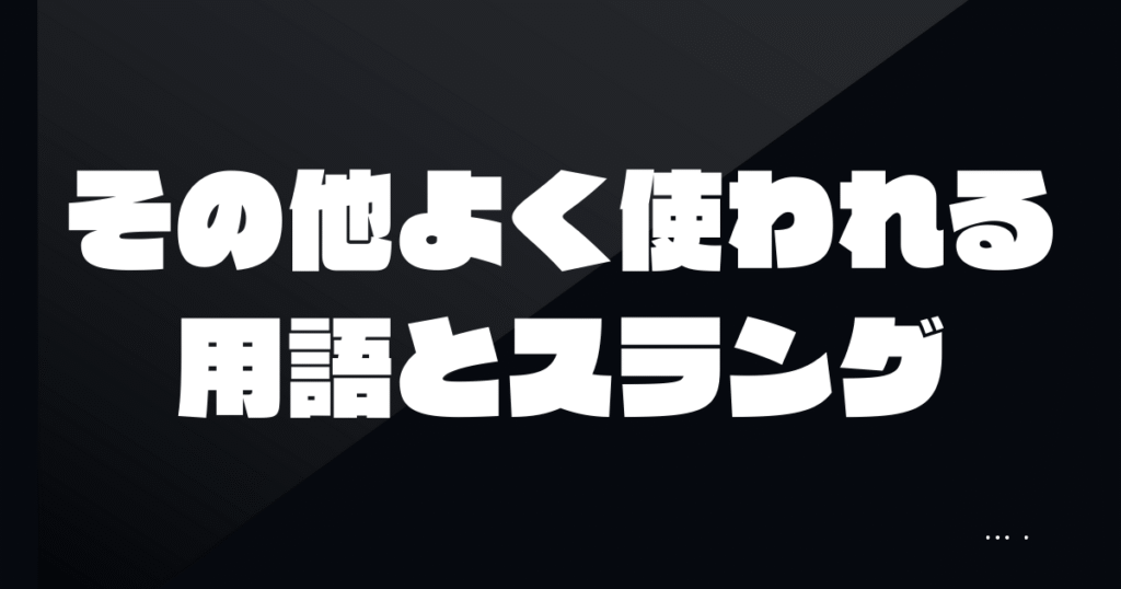 ゲーム内のシステムや、プレイヤー間で頻繁に使われる俗語や略語です。これらを知っていると、よりスムーズにコミュニケーションが取れます。